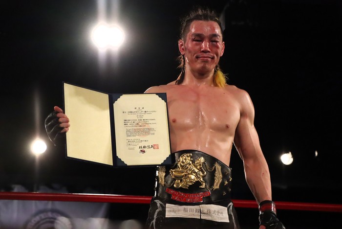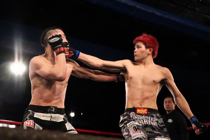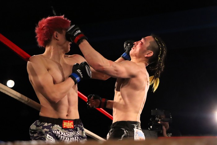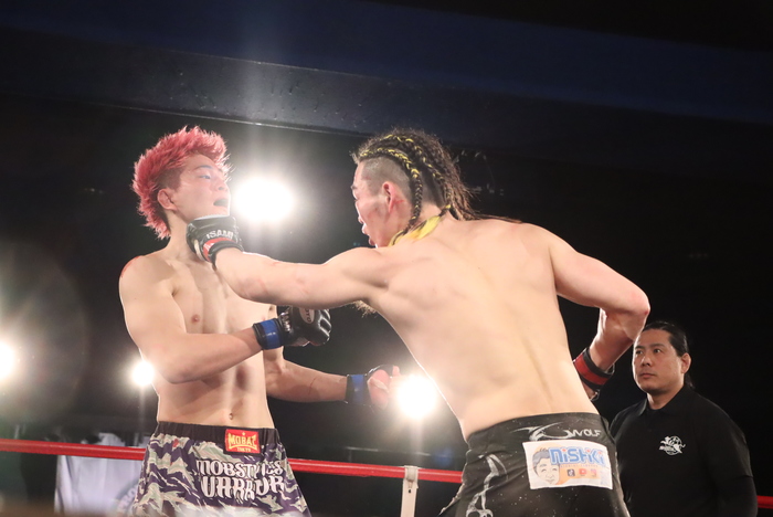 そんなメモリアルな大会のメインを飾ったのは25年の9月に悲願の環太平洋王者に輝いたたてお(ELEVEN)と、5月に石原夜叉坊を1R KOに下した“ベビーフェイスアサシン”青井太一(心技舘)の2人。環太平洋王座戦が組まれた。