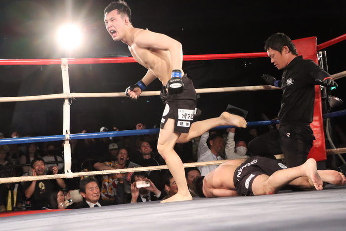 一本勝ちで号泣の藤田は「人見選手、4年前に負けたときから君を意識してきました。4年前の雪辱をはらしました。修斗関係者の皆さん、僕を世界ランカーと戦わせてください。僕はこれからも止まらずに無限に動き続けます!」と咆哮した。
