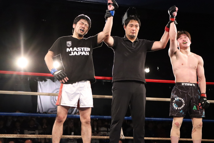 互いに四つで倒れず。残り30秒で崩した黒瀬がすぐにバックにつこうとするが、スクランブルの加藤が立ち上がりコーナーに詰めて左右連打でゴング。判定は1-1の痛み分けドローに。