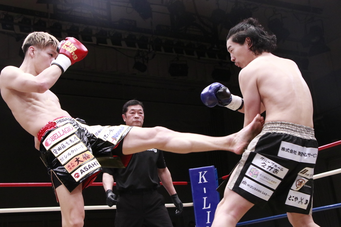 立ち上がった関はワンツーで攻めるが、哲志の右カーフの苦痛に表情を歪める。最後は哲志が右カーフで2度目のダウンを奪ったところでレフェリーがストップした。