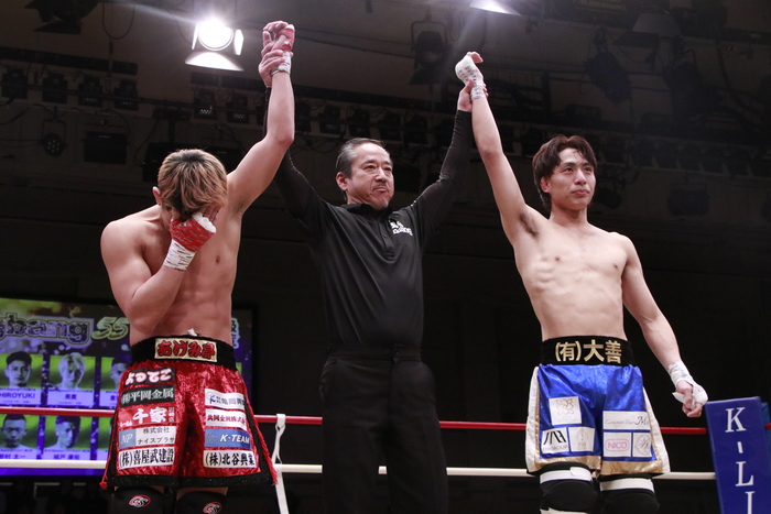 嶋津の代わりにエキシビション出場となったHIROYUKIは、回転技やノーガードになってパンチをかわすなど魅せて「5月17日にBigbangに戻ってきます」とアピール。大島は「万全の態勢で戻ってきてまたやりましょう」と嶋津へメッセージを送った。また、大島は「ルールは何でもいいので駿太とやらせてください。駿太に勝ったらタイトルマッチお願いします」と、駿太戦と晃貴戦をアピールした。