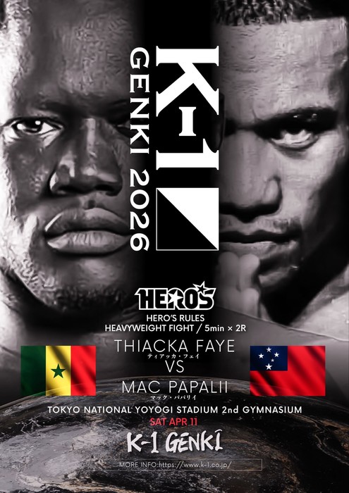 2026年4月11日(土)東京・国立代々木競技場第二体育館『K-1 GENKI 2026』の追加対戦カードが、本日3月3日(火)19:00にK-1公式YouTubeチャンネルにて発表された。