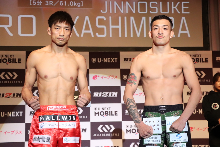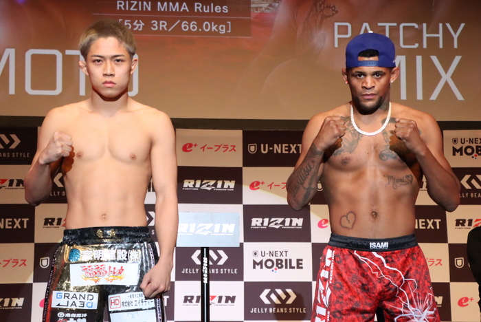 メインイベントの第12試合RIZINフェザー級(-66.0kg)5分3Rで対戦する、秋元強真(JAPAN TOP TEAM)はリミットちょうどの66.0kg、パッチー・ミックス(米国)は65.95kgでそれぞれパス。