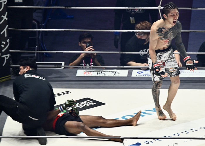 今回、両者は57kgのRIZINフライ級から2kg重い59kg契約で対戦する。KNOCK OUT UNLIMTEDルールで際の打撃を磨いたモタが、サッカーキック&踏みつけ有りのRIZINルールでさらなる覚醒なるか。