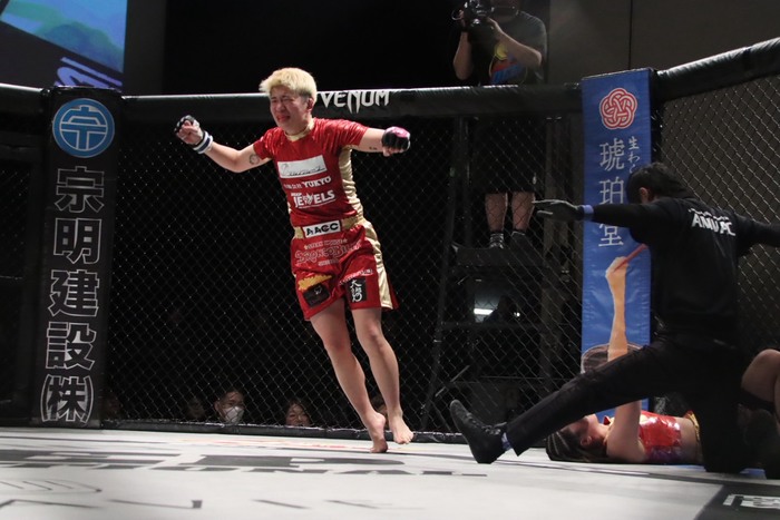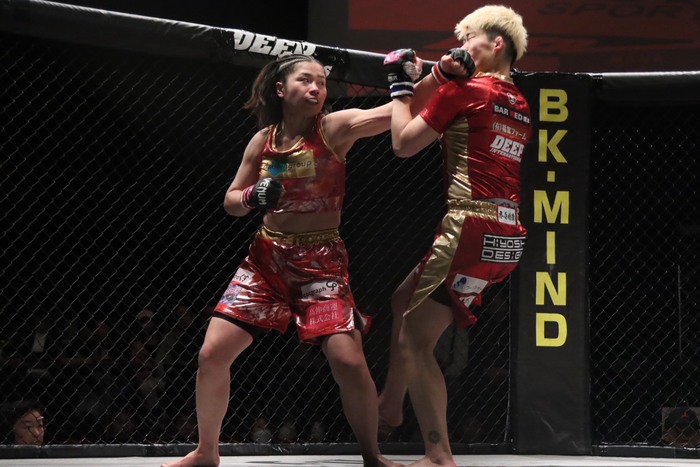 【DEEP】須田萌里がジャブ当てるHIMEにバックから攻めて判定勝ち。5.10 RIZIN神戸大会出場アピール。19歳・知名昴海が一本勝ちで6戦無敗に