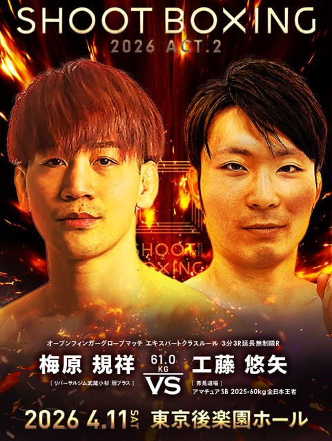 2026年4月11日(土)東京・後楽園ホール『SHOOT BOXING 2026 act.2』(U-NEXT配信)の追加対戦カードが発表された。
