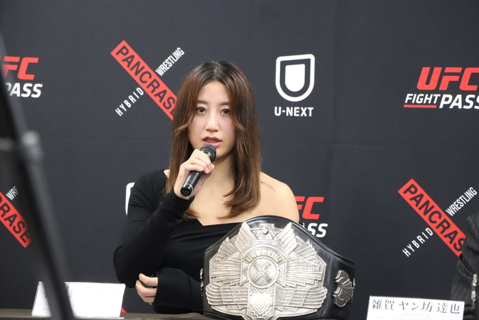 現在必要なものというか、現在私が獲るべきものはこれで、シーズンによっては格闘技の試合がなければ、自分のアビリティ、使えるものを活かしますけど、今の私が一番欲しい、獲るべき物として(ベルトを)考えています]