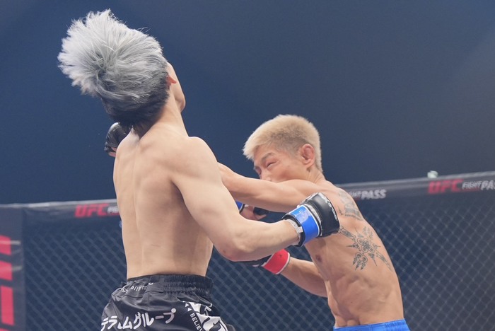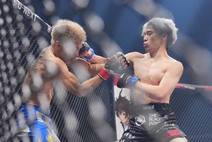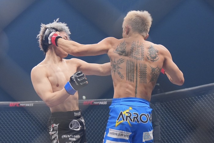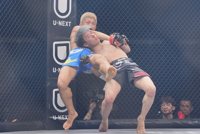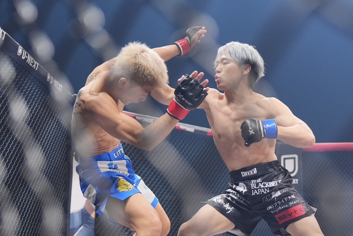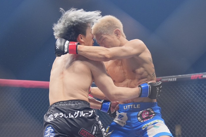 佐々木はケージに押し込むと膝つきタックルに入るが、切って離れたリトル。消耗しながらも左右のパンチで出るリトル。佐々木のシングルレッグを切った。またシングルレッグを仕掛けた佐々木に、こらえてパンチを入れるリトル。