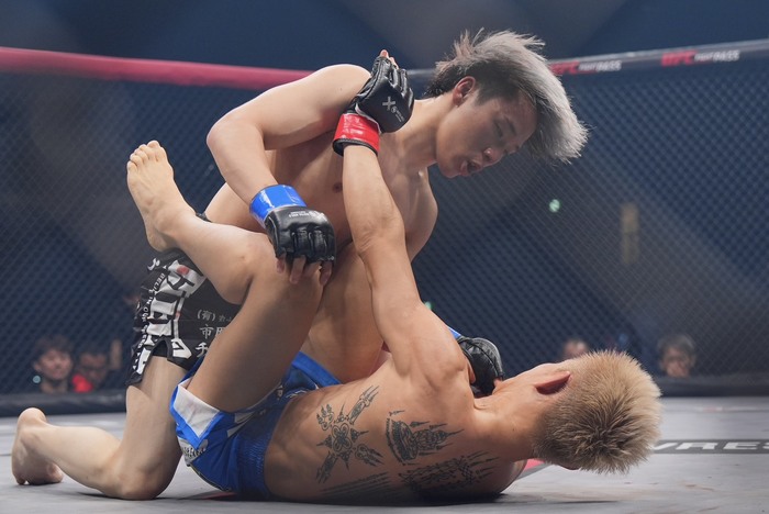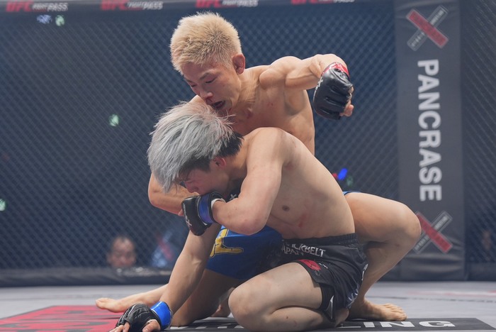 押さえ込みながら殴っていく佐々木に、リトルも下からパンチを入れていく。体を起こしてパウンドを打ち込んだ佐々木。残り1分半で立ち上がったリトル。