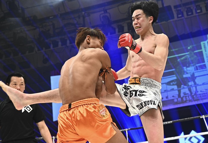 1R、優翔がワンツーと右ローでペースを握り、セントリーが攻めようとするところへヒザ蹴り。このヒザをタイミングよく決めてからのワンツーも。優翔は右ミドル、ワンツー、また右ミドル。セントリーは業を煮やしたかパンチを出しながら入って来るが、優翔は組んで止める。