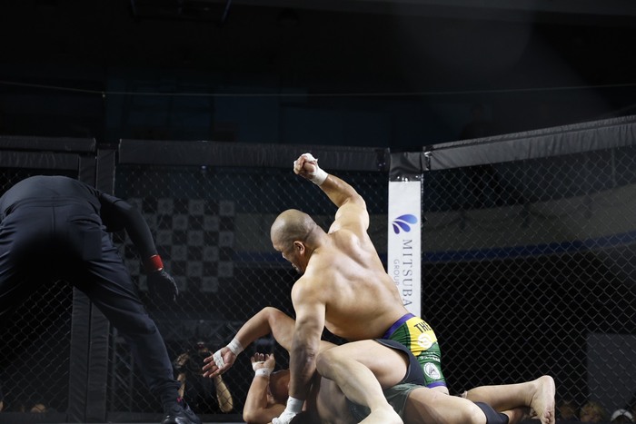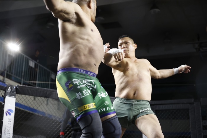 ダブルレッグに入るが小路が切る。四つ組みに。関根は四つから金的にパンチを入れる。ヒザを返す小路。関根が四つから左で差して捨て身投げた。倒された小路のバックに回る関根。パウンド・ヒジ連打!打たれ続ける小路を見てレフェリーが止めた。