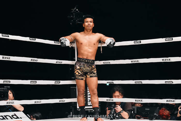 2026年3月28日(土)東京・両国国技館『RISE ELDORADO 2026』(ABEMA PPVでLIVE配信)にて、「GLORY×RISE LAST FEATHERWEIGHT(-65kg)STANDING TOURNAMENT」準々決勝に臨むGLORY世界フェザー級王者ペットパノムルン・キャットムーカオ(=ペッチ/タイ/Kiatmoo9)。