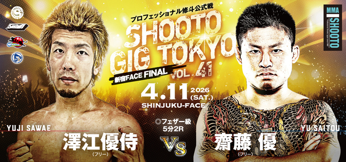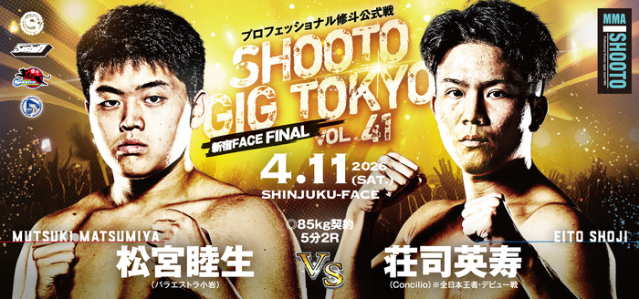 2026年4月11日(土)東京・新宿FACEで開催されるプロ修斗公式戦『SHOOTO GIG TOKYO Vol.41』の一部対戦カードが発表された。