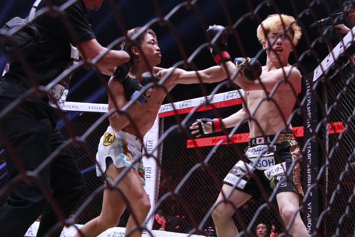 2Rが始まってすぐ、井原が真正面からの左ストレートでダウンを奪う。すぐに立ち上がって逆転を狙う芦澤だが、井原の左フックを何度も被弾する。最後は打ち合いで井原の連打に芦澤がダウンを喫し、井原のKO勝ちとなった。