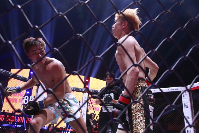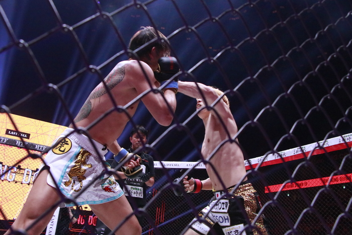 1R、芦澤が前蹴りからワンツーで前へ出ていくが、ヒザ蹴りに井原が左フックを合わせる。倒れた芦澤だがすぐに立ち上がり向かっていく。芦澤はヒザ蹴りを連打。