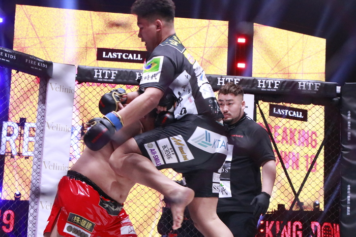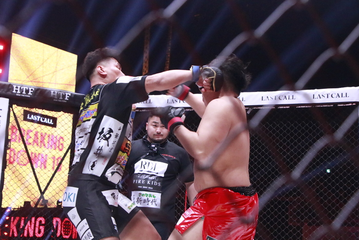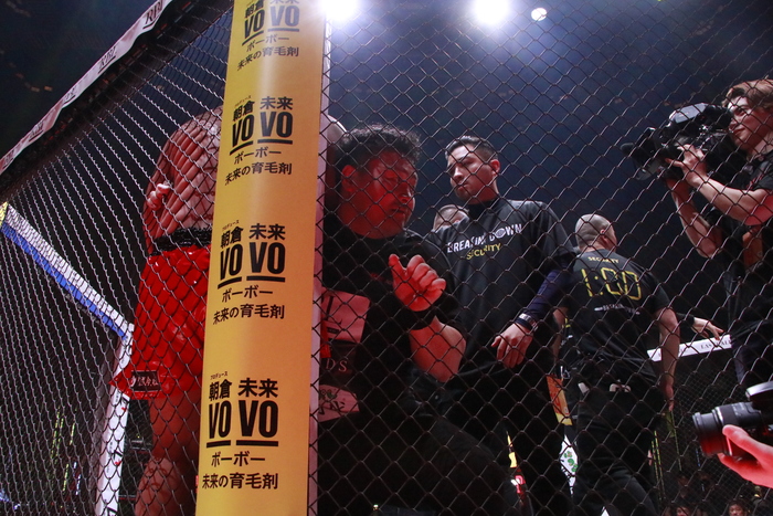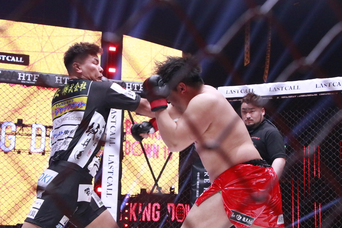 赤パンはレフェリーに突然襲い掛かり、レフェリーも左ミドルの連打で応戦。レフェリー陣が赤パンを取り押さえ、一時騒然となった。