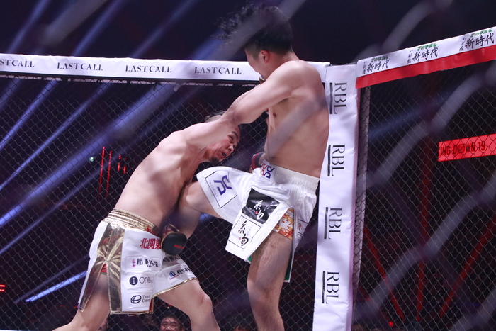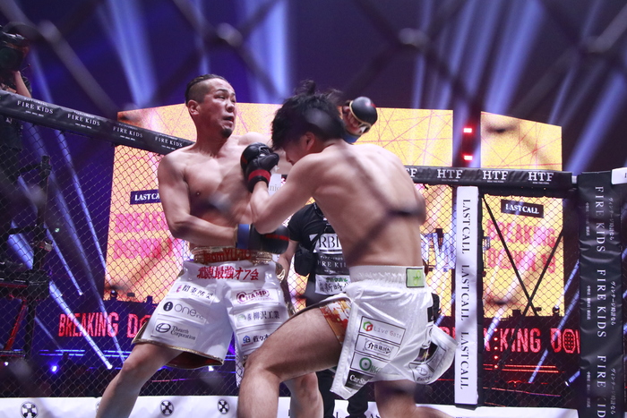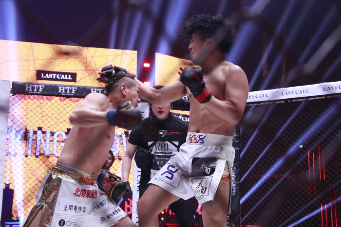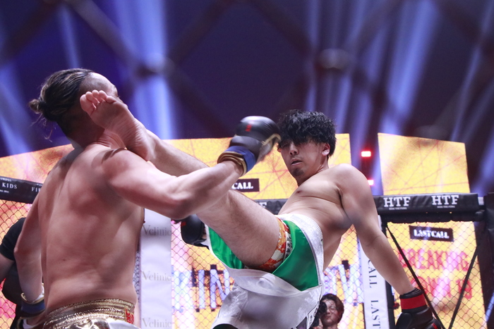 開始から打ち合う両者。TETSUはパンチをフェイントに顔面前蹴り。その後も顔面前蹴りをヒットさせる。