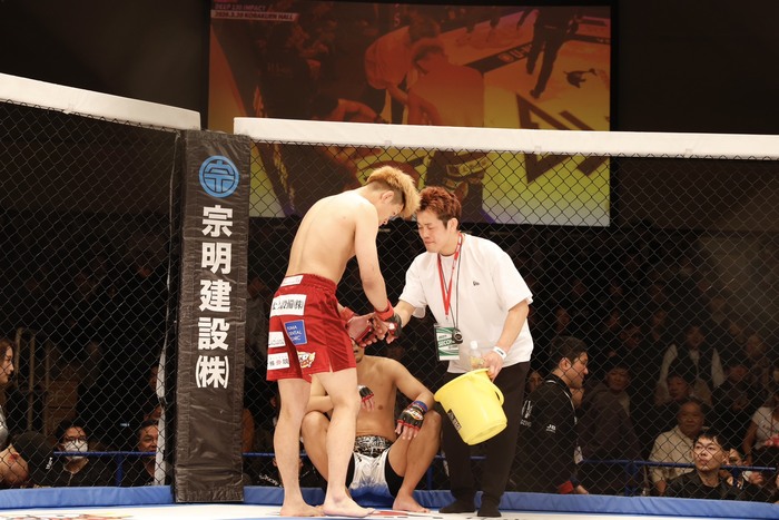 25年6月のDEEP大阪大会では、MG眞介の反則のグラウンドポジションでの頭部へのキック攻撃を受けるなど脳へのダメージが心配された。そんな中、今回の山本有人戦が9カ月振りの復帰戦に。米国グラップリングのNAGAエキスパートクラスでベルトを巻くなど、寝技の強化にも取り組んできた。