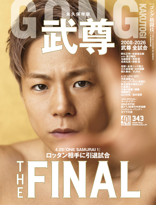 2025年11月16日のデニス・ピューリック戦では、ケージ最上段からのハイアングルなムーンサルト(ゴング格闘技5月号 No.343の裏表紙で見ることが出来る)を決めて見せた武尊。ファイナルマッチとなるロッタン戦でリベンジを達成し、最後のムーンサルトを披露することが出来るか。