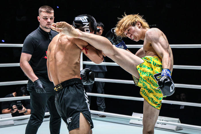 アマチュアボクシングで実績のある奥村だが、ハイキックも得意(C)ONE Champiosnship
