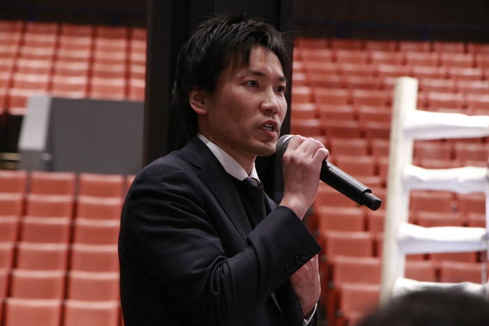 「私ども、この後楽園ホールを経営運営している会社としてです。キックボクシングだけではないんですけれども、様々な格闘技の可能性というものを非常に感じながら、この会場を興しておりました。そんな中、キックボクシングの今日お集まりの方々に、今後我々が統一するとかいうことではなくて、何か皆様方の事業を応援することによってマーケットを拡大することが可能ではないでしょうかということをいろいろ相談させていただきながら、今回の開催に至ったということでございます。我々としては、このマーケット拡大というものを一番の狙いと感じています」