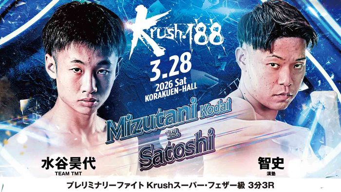 また、プレリミナリーファイト第3試合のKrushスーパー・フェザー級3分3Rで水谷昊代(TEAM TMT)と対戦する智史(漢塾)が契約体重-60kgから2.7kgオーバー。