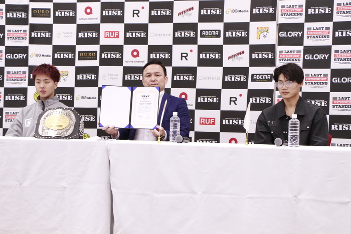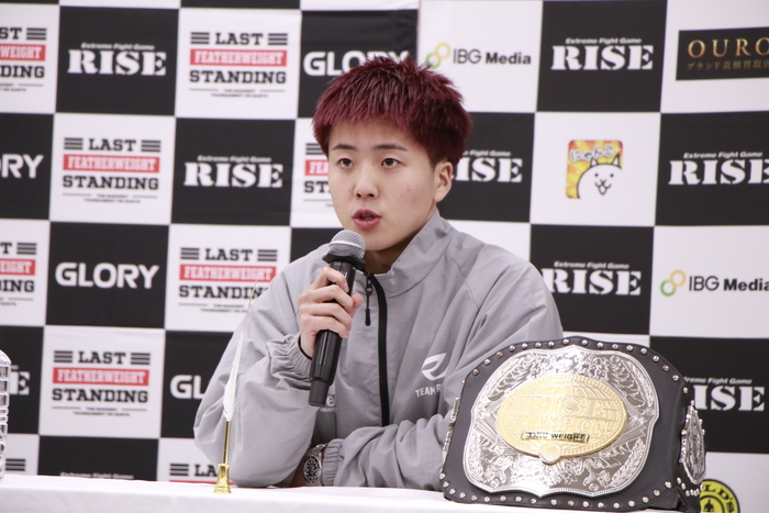 目の前に置かれているベルトにはどんな想いがあるか、との問いに長谷川は「やっとここまで来れたっていう。RISEに来て4年くらい経つんですけれど、やっとあと一歩の所まで来たという印象です」と悲願のタイトル獲得まであと一歩、という。