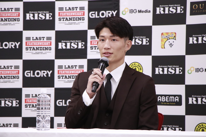 続いての会見で寺田は「やっと明日、試合ができます。自分の強さを証明できるので楽しみです」と2025年7月以来となる試合が待ち遠しい様子。安本も「明日試合ができてワクワクしてます。明日はRISEのフェザー級チャンピオンとして、しっかり倒して勝つので皆さん目を離さずしっかり試合を見てください」と、フェザー級頂上決戦と謳われた一戦に気合い十分。