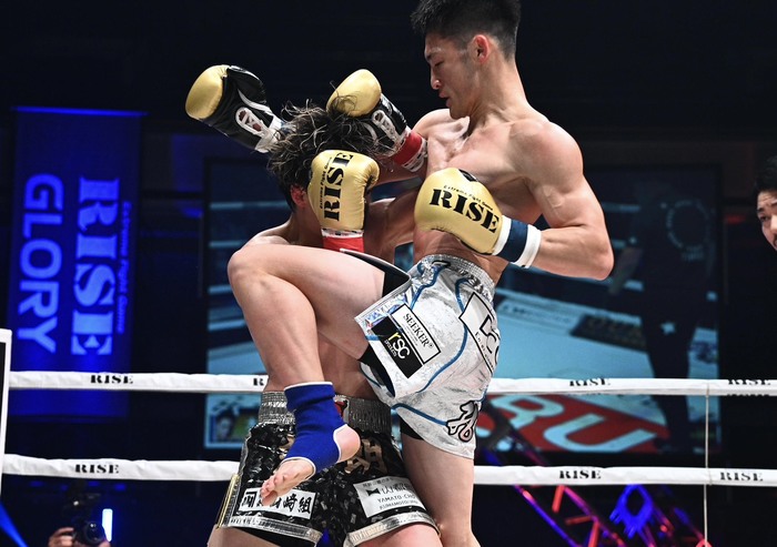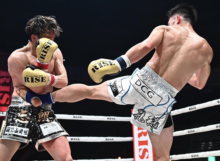 4R、ジャブを突き左ボディを打つ志朗。前に出る大﨑が左フック、志朗は右フックを返す。ジャブを突く志朗に大﨑は左ショートアッパーの連打、飛びヒザ。志朗は右ローを蹴り、大﨑は得意の右ヒザ。志朗はダウンを取り戻すような場面は無かった。