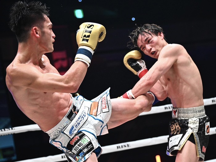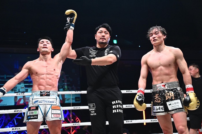 5R、ジャブを突き合う両者。大﨑は左ローとワンツー、志朗は右ロー。距離を詰める大﨑は左ボディ。互いに左ボディを打ち、大﨑はワンツーで前へ出ていく。左フックも当てる大﨑。志朗は逆転の一手を打つことなく、大﨑のペースで試合を終えた。