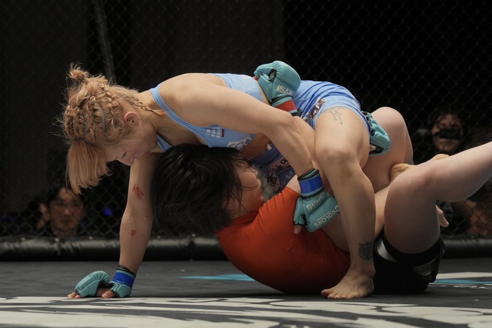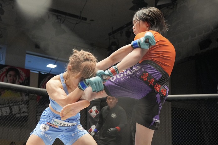 そして2025ー2026に掛けて熱戦が展開されてきた「インフィニティリーグ2025女子スーパーアトム級」が今大会で最終節を迎える。優勝の可能性を残すのは勝ち点8の高本千代(高本道場)と、勝ち点7で追う村上彩(修斗GYM東京)の2人。