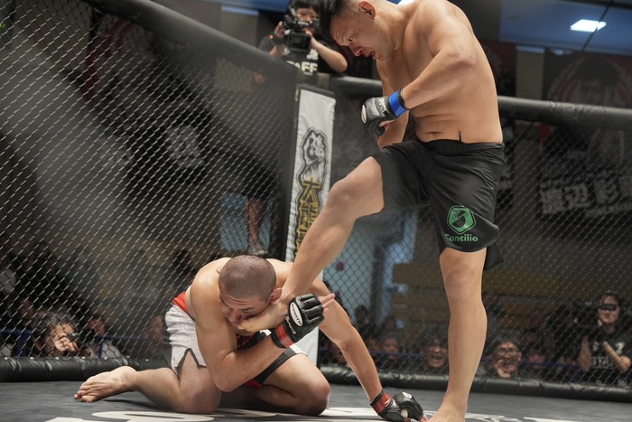 ※沙門にグラウンド状態での蹴りで「減点1」。
