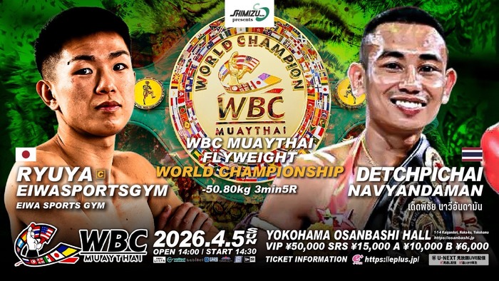 2026年4月5日(日)神奈川・横浜大さん橋ホール『Shimizu presents BOM 50』(U-NEXT配信)にて、WBCムエタイ世界フライ級(-50.80kg)タイトルマッチ3分5Rでデッピチャイ・ナヴィアンダマン(タイ)の挑戦を受けて2度目の防衛戦に臨む竜哉・エイワスポーツジム(エイワスポーツジム/王者)のインタビューが主催者を通じて届いた。