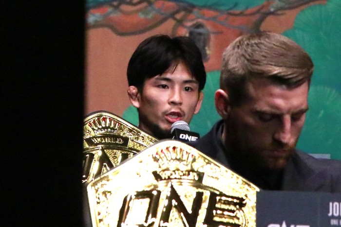 ONEフライ級(-61.2kg)MMA世界タイトルマッチ5分5Rで、アバズベク・ホルミルザエフ(ウズベキスタン)の挑戦を受けて2度目の防衛戦に臨む王者・若松佑弥(TRIBE TOKYO MMA)が登壇。