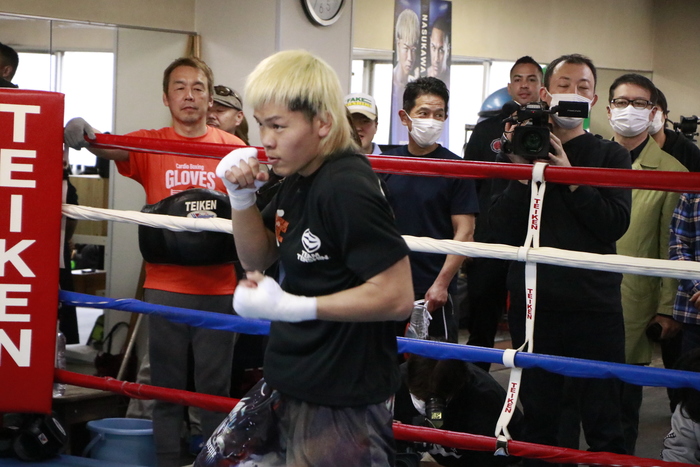 2026年4月11日(土)東京・両国国技館『Prime Video Boxing 15』にて、ファン・フランシスコ・エストラーダ(メキシコ)とWBC世界バンタム級挑戦者決定戦を行う那須川天心(帝拳ジム)が、3月31日(火)都内所属ジムにて公開練習を行った。