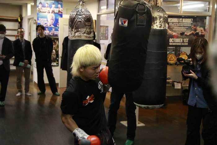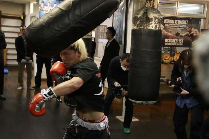 公開練習では2Rのシャドー、1Rのミット打ち、1Rのサンドバッグ打ちを披露した那須川天心