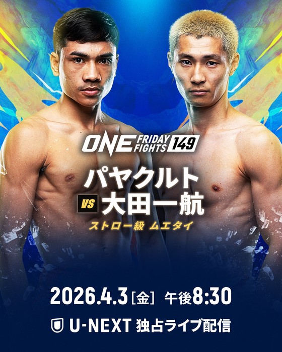 2026年4月3日(金)タイ・ルンピニースタジアム『ONE Friday Fights 149』(U-NEXT配信)に、今週も日本人選手4名が出場する。