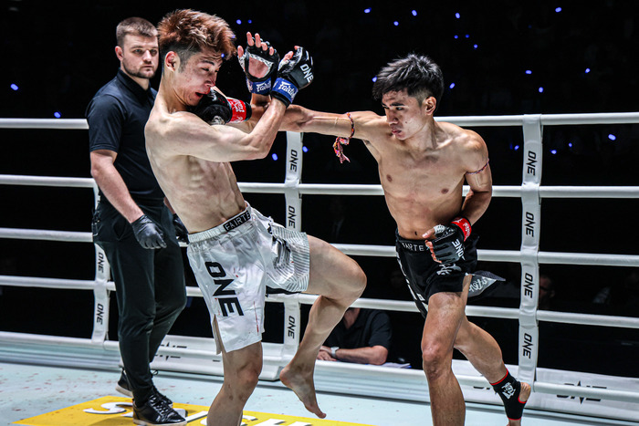 2R、右ローから右ストレートに来るパヤクルトに一航はワンツー。右ミドルをキャッチされると左ヒジを見舞う一航。パヤクルトが左フックをオープンハンドで振り、これがアイポークになったため一時中断。再開後、前に出るパヤクルトに一航は左ヒジ、ワンツー、右ストレートからの左フック。