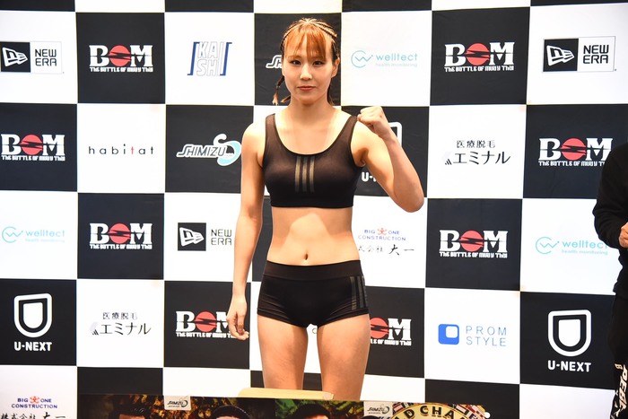 「今の女子ムエタイで一番強い選手なので、ここで勝って次にどうつなげたいという明確な目標はないですけれど、勝つことで先につながると思うので勝利することに集中したいと思います」と、この一戦に集中して藤原に勝つと話した。