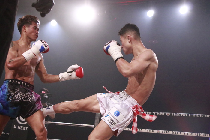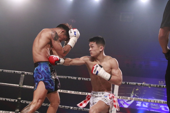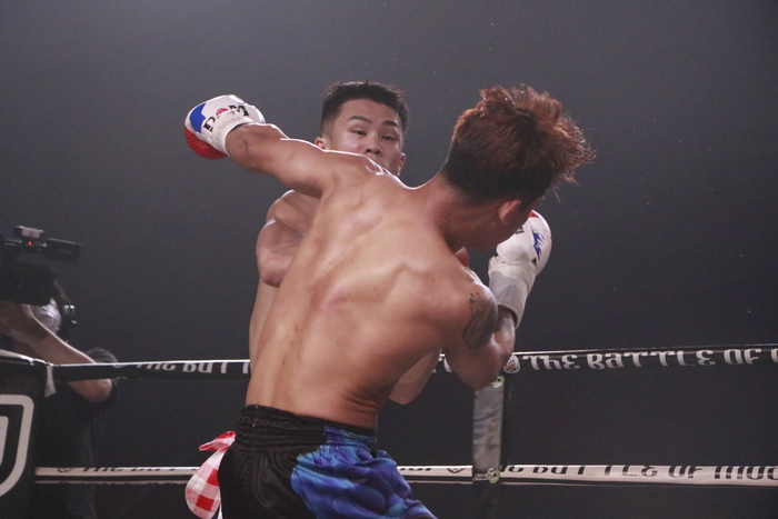 1R、ローの蹴り合いから、ジャンプしてのパンチやヒジを繰り出すペプシにレンタは左三日月と左ボディを狙い撃ち。何度もクリーンヒット奪う。ペプシは首相撲からのヒザに持ち込む。