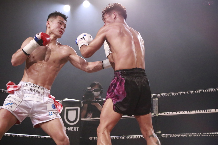 2R、左ボディだけでなく右ボディストレートも打つレンタが、右フックでダウンを奪う。その後も左ボディからの左右フック、ワンツーからの左ボディと攻めるレンタだがペプシは前へ出てきて打ち合うなどタフなところを見せる。