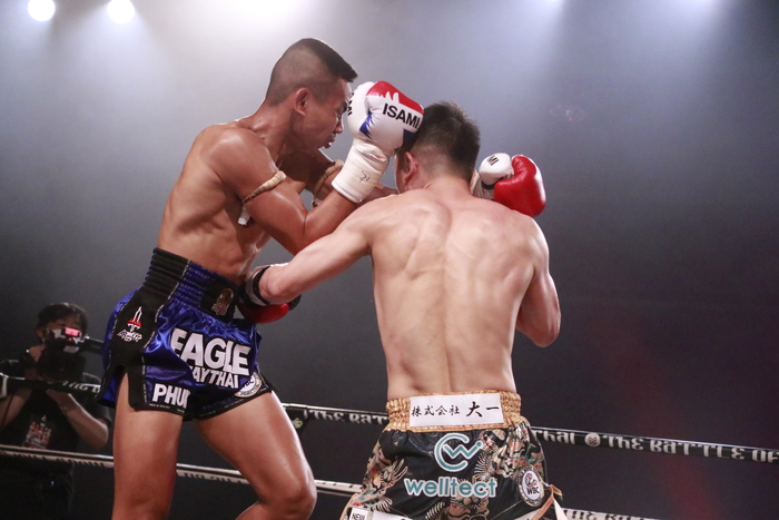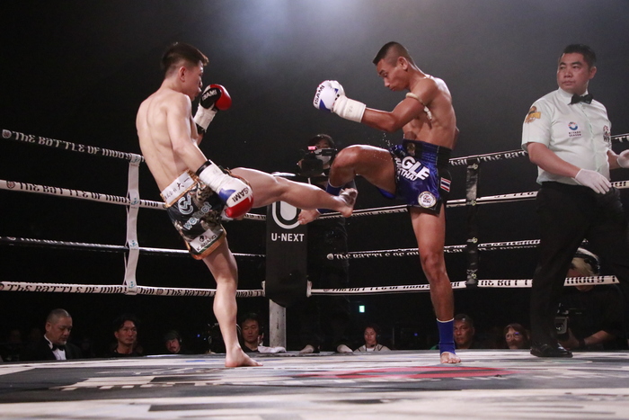1R、竜哉は右インローと右ハイ、サウスポーのデッピチャイは左右ミドルと左ロー、左ストレートを放つ。積極的に蹴って来るデッピチャイに竜哉は左フックを合わせる場面も。やや手数が少なかった竜哉だが、終盤は蹴り足をキャッチして引き寄せての左ボディ、左右フック。