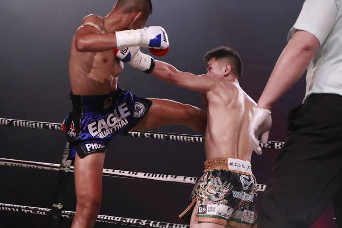 2R、竜哉が三日月蹴りからのワンツーをヒットさせてデッピチャイを棒立ちにさせるも、その後にデッピチャイが左右ミドルと前に出ての首相撲&ヒザ蹴りで逆襲。押される場面もあった竜哉だが、終盤に再びパンチをヒットさせて自分のペースに持ち込む。