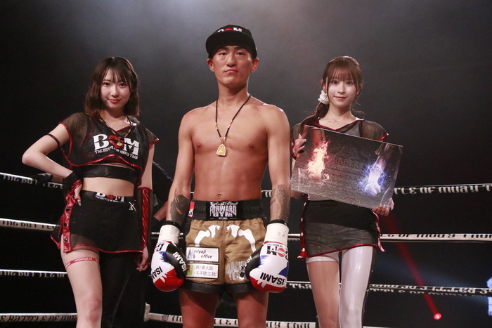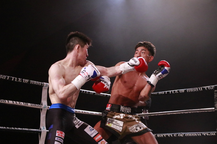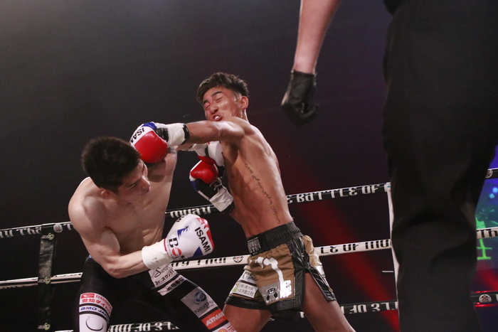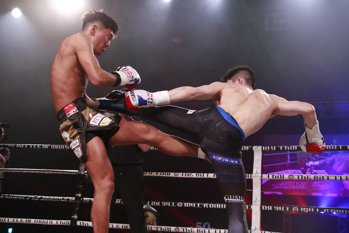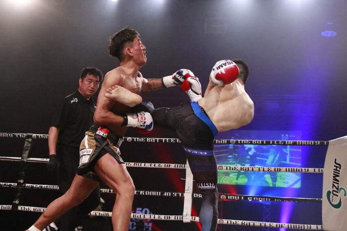 佐藤のペースで進む中、黒田が蹴りを空振りさせてアゴにヒザを突き上げ、強烈なダウンを奪う。しかし、レフェリーがファイトを促す前に黒田が佐藤にパンチを見舞ってしまい、イエローカードが提示される。