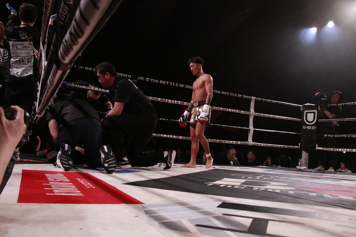 勢いよく攻め込んだ佐藤を、黒田が右フックを打ちながらかわすと、佐藤がそのまま倒れ込み動かない状態に。レフェリーはKOを宣し、佐藤は担架で運ばれた。(※試合後に、佐藤が突っ込んだところでバッティングが発生したことが判明、試合結果は協議される模様)