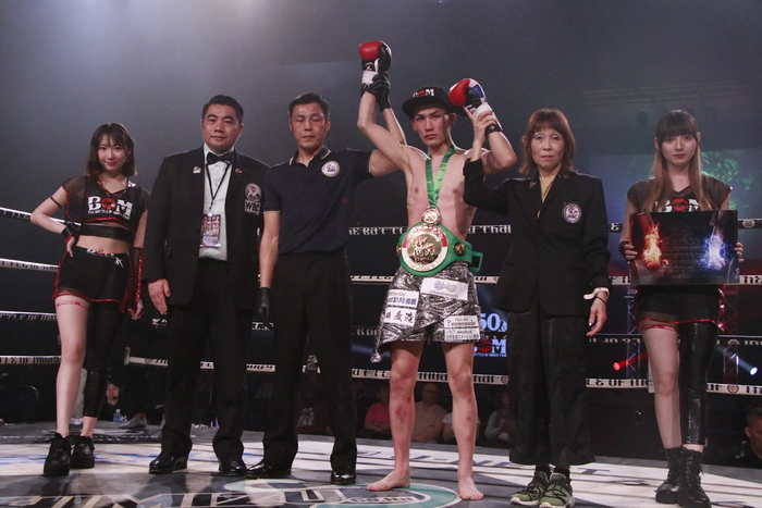 4R、山脇はロープ際まで下がってミドルと右ストレートでJOHを迎え撃つ。JOHは明らかに一発狙いで圧をかけていき、山脇を下がらせていく。そしてついに執念の左ストレートが山脇に直撃、倒れた山脇は立ち上がることが出来ず、JOHがKO勝ちで新王座に就いた。