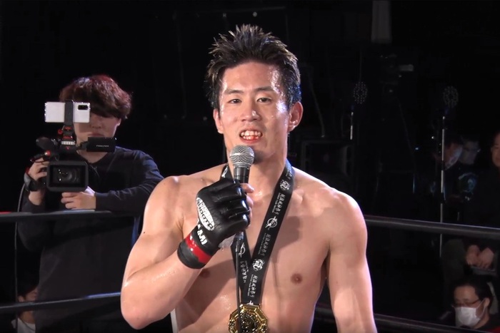 ※駒沢は1Rに左でダウンを奪い、2Rに三角絞め。「試合前に『こねくり回してやる』と言われて、逆にこねくり回してやりました。自分、まだ始めて1年で伸びしろあると思うので応援よろしくお願いします」と語った。