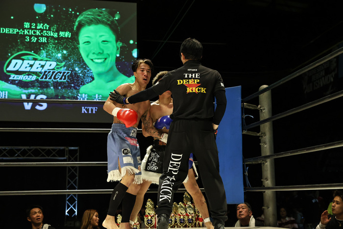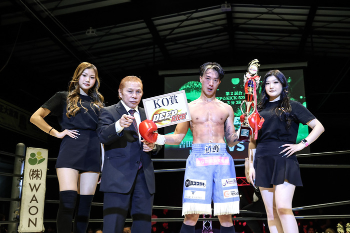 そして3R、吉田はパンチの連打でスタンディングダウンを奪う。清志はファイティングポーズをとれず、試合をストップされた。吉田はうれしいDEEP☆KICK2勝目をあげた。