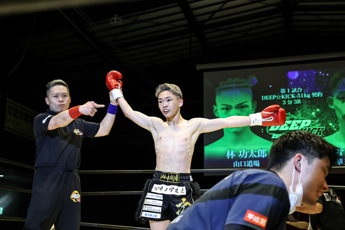 第1試合で18歳vs.22歳というフレッシュな対決が組まれた。ここまで林功太郎(山口道