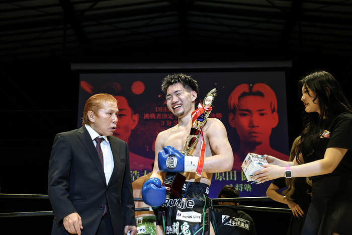 鬼の目にも涙。鬼ケ島出身の原田が花見を3-0の判定で撃破。DEEP☆KICK-63㎏挑戦者決定トーナメントを制し、6月7日の『DEEP☆KICK 78』でDEEP☆KICK-63㎏王者・吉岡龍輝(及川道場)に挑戦することが決定した。